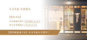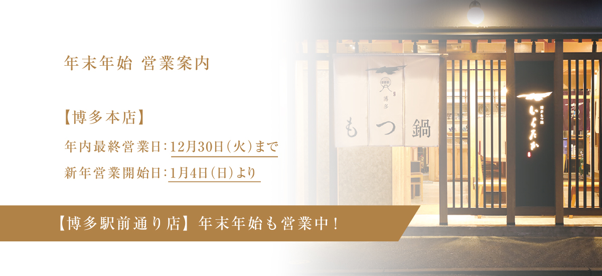 福岡のもつ鍋なら【博多もつ鍋いちたか博多本店】博多駅筑紫口より徒歩3分